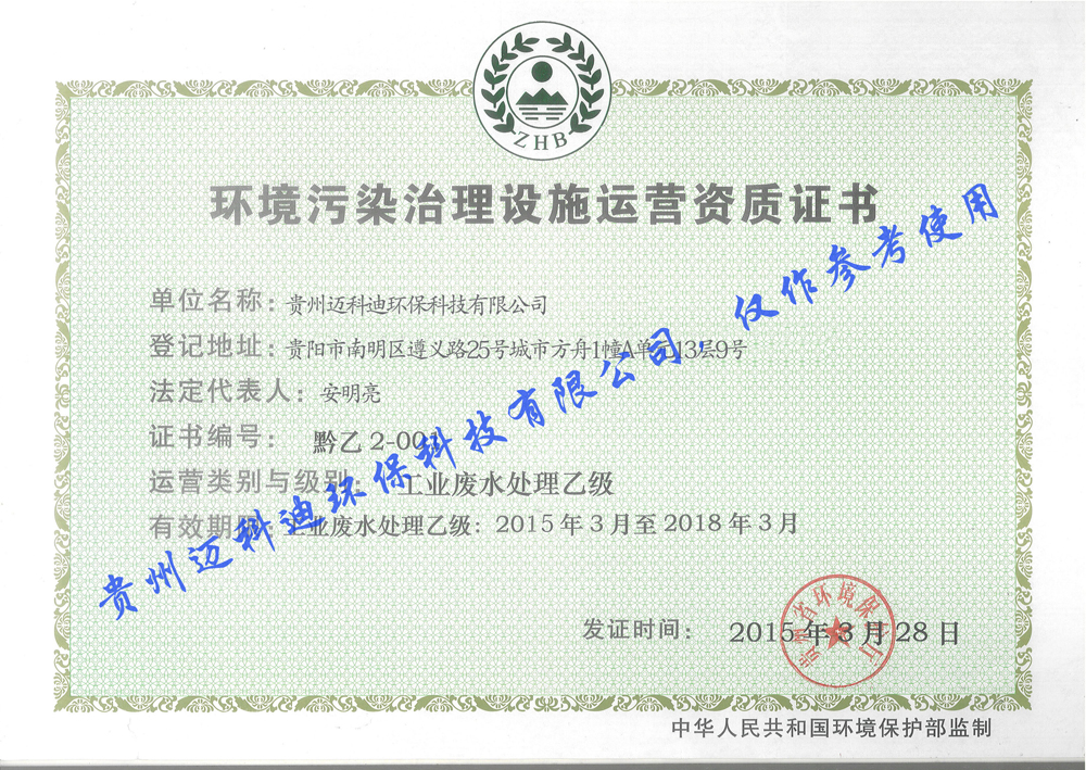 貴州邁科迪環??萍加邢薰?,是貴州省一家大型的綜合水處理設備公司,公司集純水,超純水,污水,工業廢水工程的設計,制作,安裝,調試,售后服務以及水處理設備技術和配件的研發,生產,銷售等于一體的大型環保專業化生產企業。本公司擁有高壓脈沖電絮凝水處理技術。在重金屬廢水處理,焦化廢水處理,磷化廢水處理,制藥廢水處理,皮革廢水處理,化工廢水處理,電鍍廢水處理,石油天然氣鉆井廢水處理等領域,取得了驕人的成績。公司經過多年的研究實踐,制研發出一體化工業廢水處理設備,一體化電子高壓脈沖電絮凝設備...
